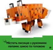Завдяки рухомим ногам, поворотній шиї, регульованій голові й очам зі змінним положенням (відкритим та закритим), фігурку лисиці можна поставити в положення "прокинулася і стоїть", "сидить з нахиленою головою", "спить" та "лежить". А з додатком LEGO Builder діти можуть будувати більш упевнено: масштабувати, обертати в 3D й відстежувати прогрес за допомогою простих цифрових інструкцій.
