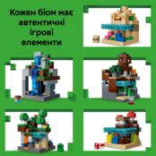 Віддайте належне культовому декору Minecraft з набором для конструювання LEGO Minecraft "Мінібіоми" (21589) для хлопчиків та дівчаток віком від 12 років. Гравці Minecraft можуть продемонструвати своє захоплення грою всім навколо за допомогою 5 іграшкових біомів та 5 мікрофігурок: Стіва, Кріпера, мушрума, хаска і мародера.