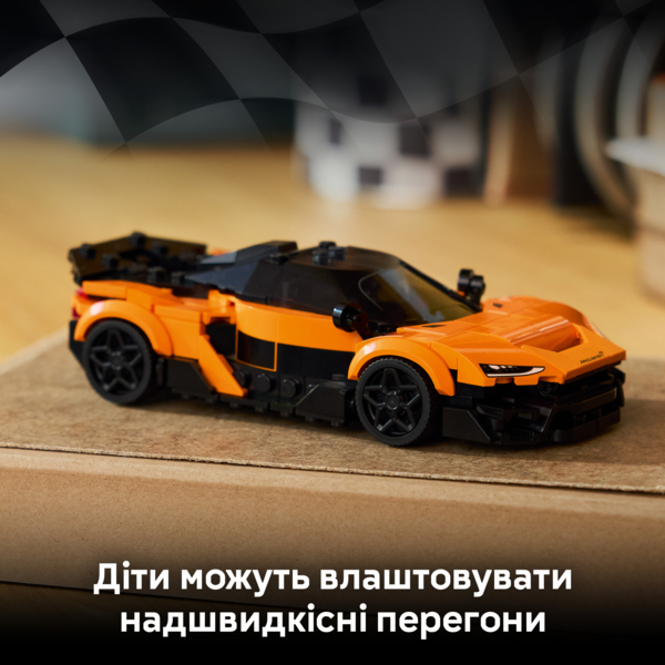 Висока швидкість чекає на хлопчиків та дівчаток віком від 9 років із цією реплікою справжнього суперкара LEGO Speed Champions "McLaren W1". Діти можуть збирати, демонструвати та влаштовувати перегони на стильному боліді, який містить чимало знакових деталей дизайну з реальної версії, випущеної на честь 50-річчя першої перемоги McLaren у чемпіонаті світу Formula 1.