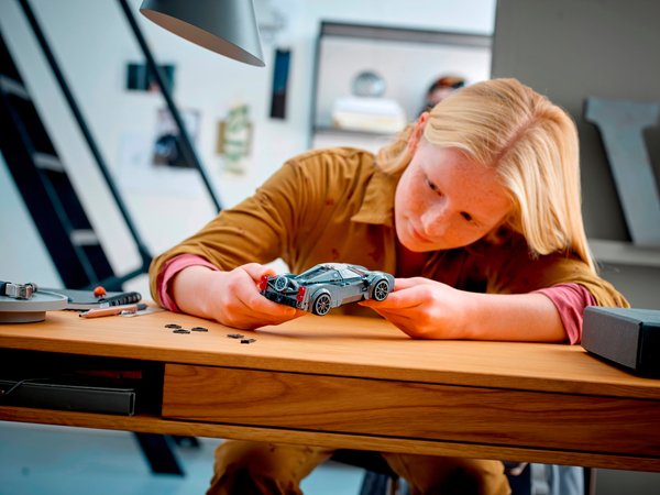 Діти в віці від 9 років можуть розіграти захоплюючі пригоди з цим гіперкаром, зібраним з цеглинок, у комплект якого входить міні фігурка водія.