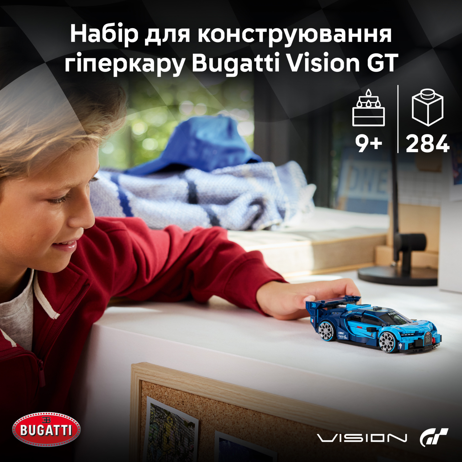 Хлопчики та дівчатка віком від 9 років можуть складати, гратись та демонструвати цей приголомшливий набір LEGO Speed Champions "Спортивний автомобіль Bugatti Vision GT Hyper". Вперше в історії цей вишуканий набір із моделлю Bugatti дозволяє поціновувачам цього автомобіля та серії відеоігор Gran Turismo оцінити елегантність та потужність цього інженерного дива. Ця модель автомобіля Bugatti включає деталі з автомобіля, створеного Bugatti для відеогри Gran Turismo у 2015 році.