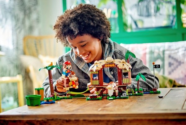 Із цим додатковим набором LEGO Super Mario діти можуть побудувати рівень джунглів для гри на барабанах і роздачі бананів.