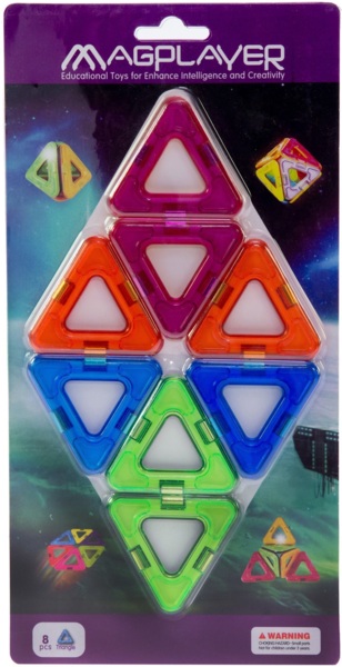 MagPlayer — магнітний конструктор, для розвитку творчості, мислення і моторики рук. Набір з восьми магнітних трикутників різних кольорів чудово доповнить вже готові конструктори та зможе внести в дитячу гру трохи різноманітності.