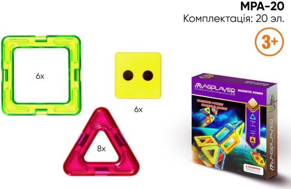 Конструктор Magplayer магнітний набір 20 ел. MPA-20