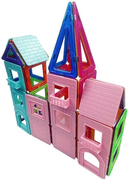 Магнитный конструктор посоветовала мне воспитатель детского сада для развития мелкой моторики и творческого воображения ребенка. На этом сайте нашла Magplayer на 86 деталей и сразу же тут заказала. Игра состоит из различной формы деталей. Внутри каждого элемента магнит, который и позволяет собирать из них различные сооружения. Конструктор хорошо соединяется между собой. Кроме стандартных кубиков и треугольников, в комплект входят арки, окна, двери, из которых можно собрать настоящий домик. Детали крепкие, все углы округленные, что обеспечивает сына от травм. Эта чудесная игра точно станет по душе не только ребенку, но и любому взрослому.