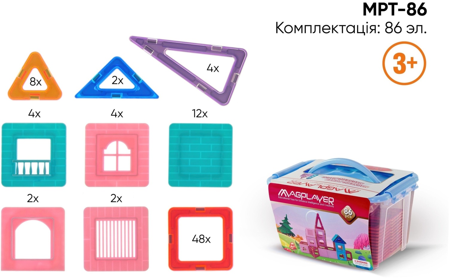 - Конструктор Magplayer магнітний набір 86 ел. MPT-86