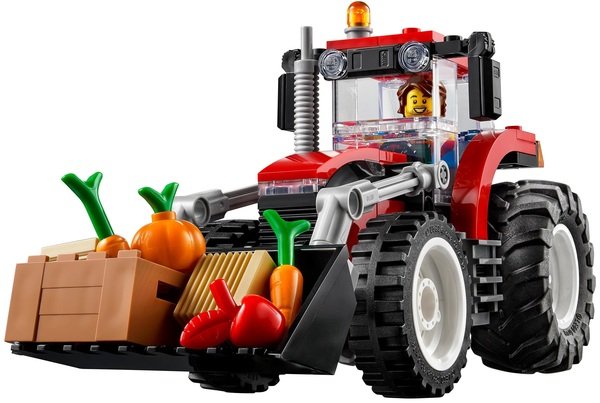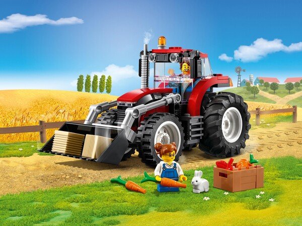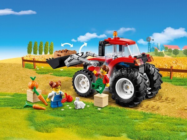 У трактора LEGO City є великі задні колеса, відкидний ківш, що піднімається стріла і кабіна для мініфігурки. Діти можуть скомбінувати його з іншими ігровими наборами LEGO для веселої гри.