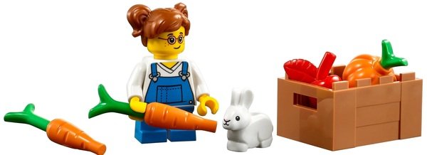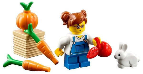 Аксесуари включають в себе ящик з гарбузом, яблуками та морквою, плюс 2 тюка сіна.