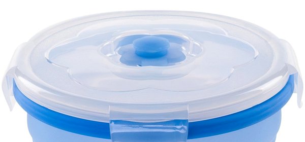 Силіконовий контейнер для зберігання харчових продуктів. Універсальний контейнер для будь-яких продуктів. Контейнер підходить для зберігання продуктів харчування вдома, його також зручно брати в дорогу. Конструкція розбірна, в розкладеному стані займає мало місця. Оснащений захисною кліпсою на кришці. Може використовуватися в мікрохвильовках, у холодильнику або морозильній камері. Силікон запобігає утворенню бактерій у продуктах.