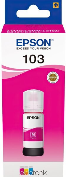 Расходники в разных цветах для своего Эпсона я беру исключительно фирменные и чаще всего на этом сайте, т.к. тут всегда все в наличии. В постоянный набор закупки у меня входит и краска цвета Magenta - покупаю в 65 мл емкостях вот такую модель. Контейнер крепкий, краска в нем не портится во время простоя, чернила имеют насыщенный цвет, который не меняется со временем. Одного такого контейнера мне примерно на 4 месяца хватает, потому затраты на закупку чернил у меня довольно умеренные. Чернила имеют хорошую химическую формулу - моментально сохнут, не плывут по бумаге, в том числе и по мелованным листам.