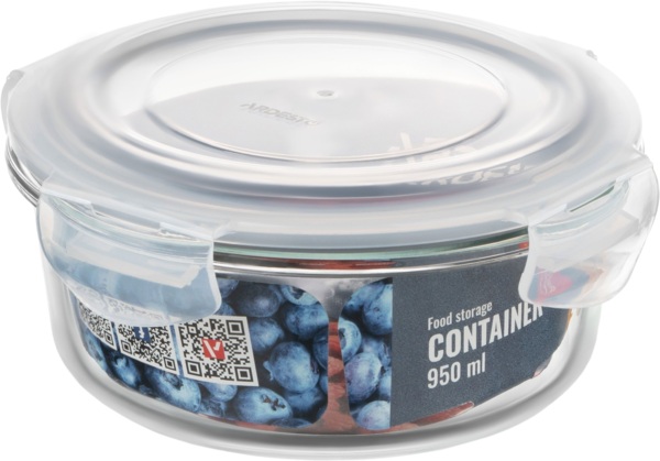 Цей круглий контейнер є універсальним для зберігання різних продуктів. Об’єм становить 0,95 л. Розмір контейнера – 18,2х18,2х8,2 см. Контейнер оптимальний для зберігання гарнірів, м’яса або овочів, він буде незамінним для щоденного використання, оптимізуючи зберігання їжі.