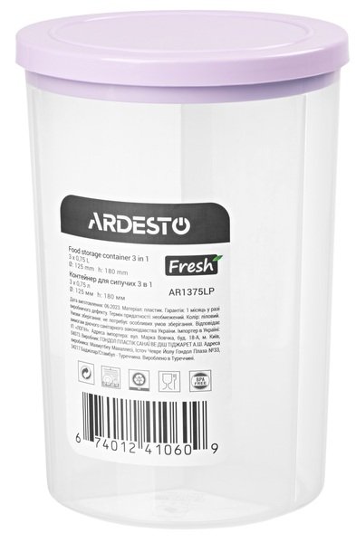 - Контейнер для сипучих ARDESTO Fresh 3в1, 3 х 0,75 л, ліловий (AR1375LP)