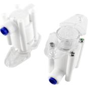 Фітинги використовуються для з'єднання фільтроелементів при комплектації систем очистки води. Вони забезпечують захист від протікання через конструкційні частини фільтрів води, які можуть відбуватися внаслідок різних причин. Наявність клапана не виключає можливості протікання, однак він обмежує розмір завданих збитків тим, що припиняє подачу води з магістралі в фільтр, коли протікання досягне корпусу клапана і запустить механізм.