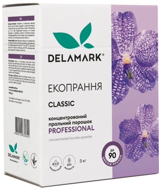 - Концентрований безфосфатний пральний порошок DeLaMark Professional 3 кг