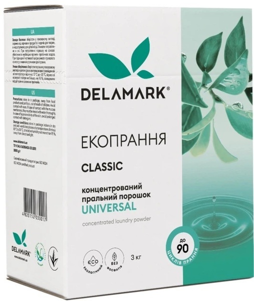 - Концентрований безфосфатний пральний порошок DeLaMark Universal 3 кг