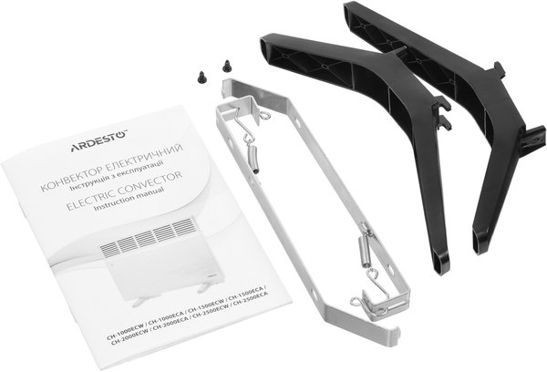 Ardesto CH-2500MCA використовує надійні комплектуючі - закритий оребрений нагрівальний елемент німецької компанії Eihenauer, а також італійський високоточний біметалічний термостат. Відсутність рухомих компонентів і продумана конструкція повністю виключає будь-які шуми під час роботи. Механічне управління складається з клавіші ввімкнення із захисною накладкою і поворотного регулятора потужності. Конвектори Ardesto підтримують два типи монтажу - настінний і підлоговий. Кронштейни та опори поставляються в комплекті з обігрівачем.