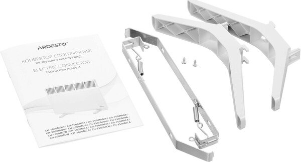 Ardesto CH-2500MCW використовує надійні комплектуючі – закритий обребрений нагрівальний елемент німецької компанії Eihenauer, а також італійський високоточний біметалічний термостат. Відсутність рухомих компонентів і продумана конструкція повністю виключає будь-які шуми при роботі. Механічне управління складається з клавіші вмикання із захисною накладкою та поворотного регулятора потужності. Конвектори Ardesto підтримують два типи монтажу – настінний і підлоговий. Кронштейни та опори поставляються в комплекті з обігрівачем.