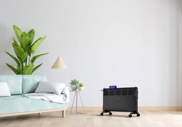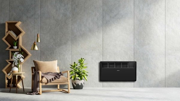 Електричний конвектор із механічним керуванням чорного кольору, класом захисту IP20 і двома режимами потужності 1 000/2 000 Вт. Оснащений регульованим термостатом і розрахований на обігрів приміщень площею до 20 м2. Клас енергозахисту – перший. У цій моделі передбачено сушку та контейнер для природного зволоження повітря. Є захист від перегріву та датчик від перекидання. Ця модель обігрівача має два типи монтажу – настінний і підлоговий. Кронштейни та опори із коліщатками для підлогового встановлення постачають у комплекті з обігрівачем.