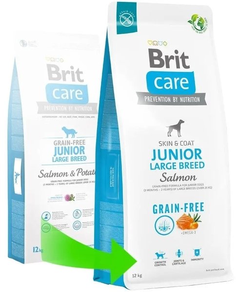 - Корм для молодих собак великих порід Brit Care Dog Grain-free Junior Large Breed беззерновий з лососем 1кг