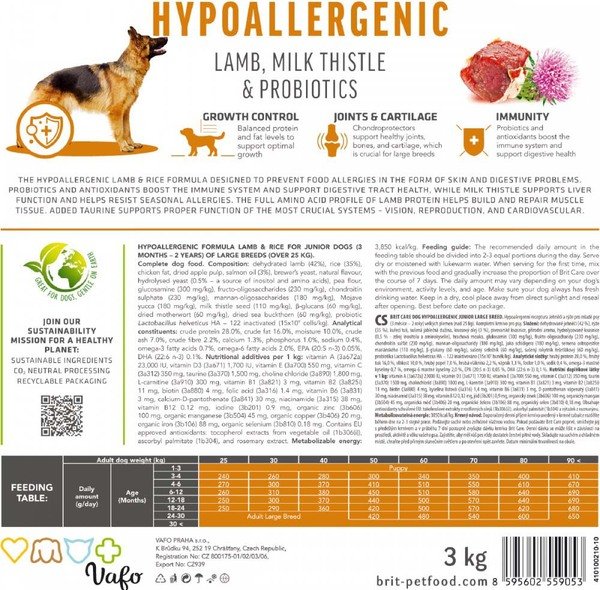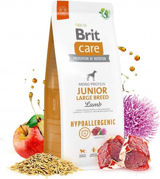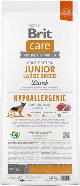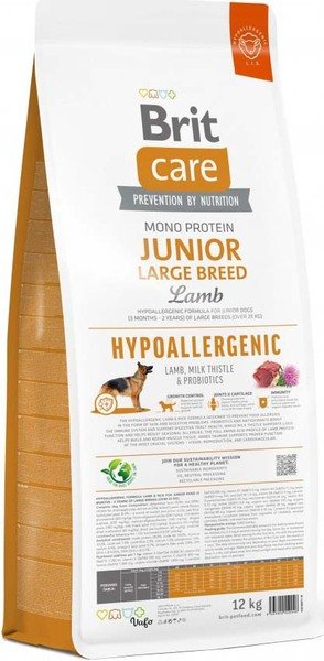 - Корм для молодих собак великих порід Brit Care Dog Hypoallergenic Junior Large Breed гіпоалергенний з ягням, 12 кг