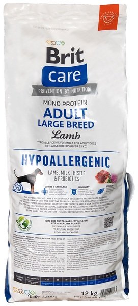 - Корм для собак великих порід Brit Care Dog Hypoallergenic Adult Large Breed гіпоалергенний з ягням, 12 кг