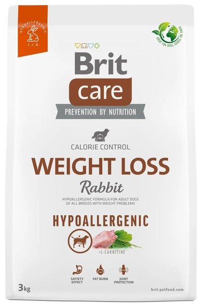 - Корм для собак із зайвою вагою Brit Care Dog Hypoallergenic Weight Loss гіпоалергенний з кроликом 3кг