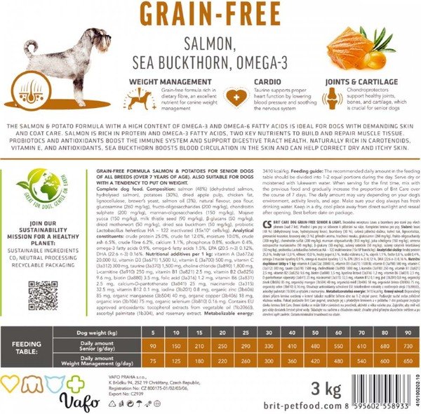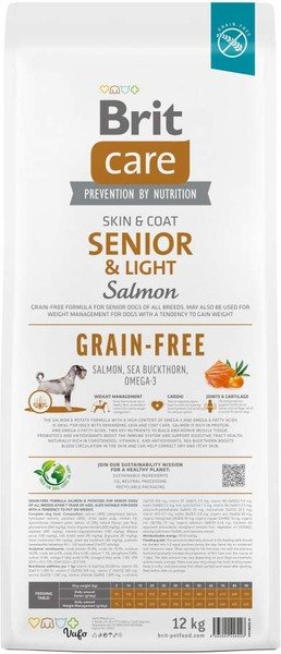 - Корм для старіючих собак Brit Care Dog Grain-free Senior & Light беззерновий з лососем, 12 кг