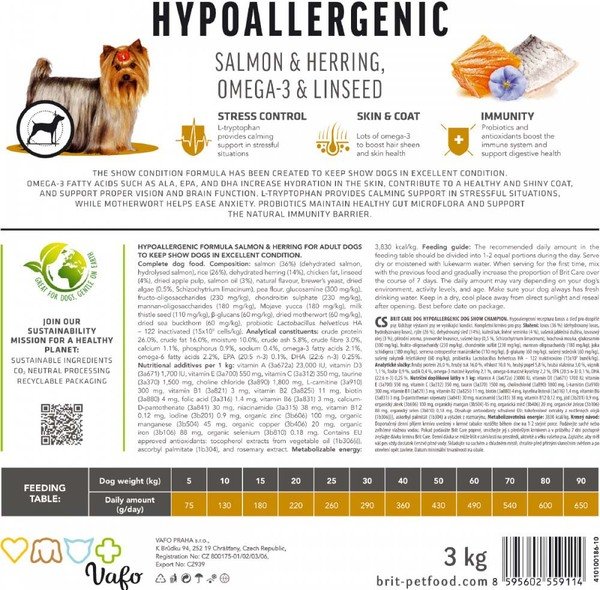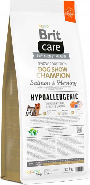 - Корм для виставкових собак Brit Care Dog Hypoallergenic Dog Show Champion з лососем і оселедцем, 12 кг