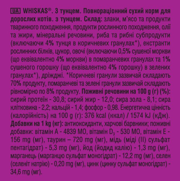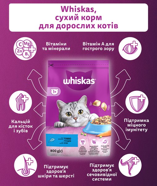 Сухий корм для дорослих котів Whiskas з тунцем 800г