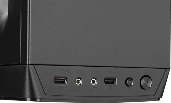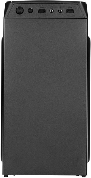 Для підключення, керування та контролю за комп`ютерною периферією в арсеналі корпусу є роз`єми 2xUSB 2.0, HD AUDIO+MIC, кнопки та індикатори Power, Reset, Power LED, HDD LED. Корпус з верхнім розташуванням блока живлення (немає в комплекті).