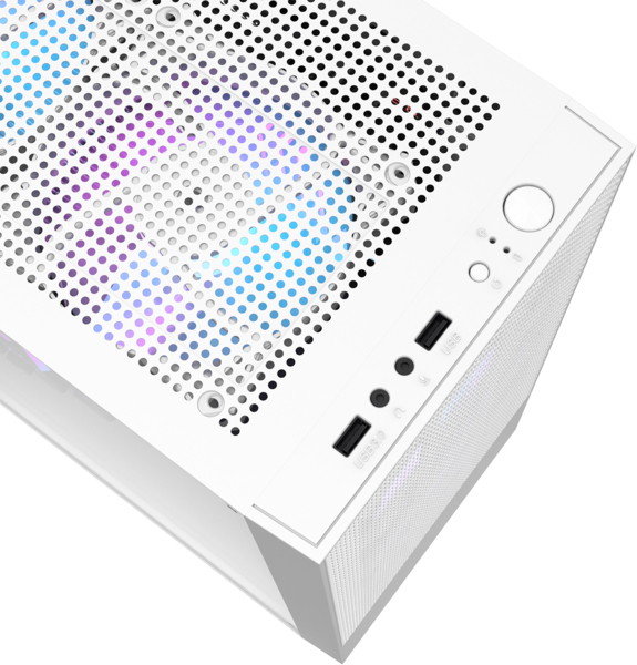 Для охолодження передбачена можливість встановлення до п’яти вентиляторів: два спереду, два зверху та один ззаду. На передній панелі розміщені необхідні інтерфейси - USB 3.0, USB 2.0, аудіороз’єми, а також кнопки живлення та перезавантаження, що забезпечує зручний доступ у повсякденному використанні.