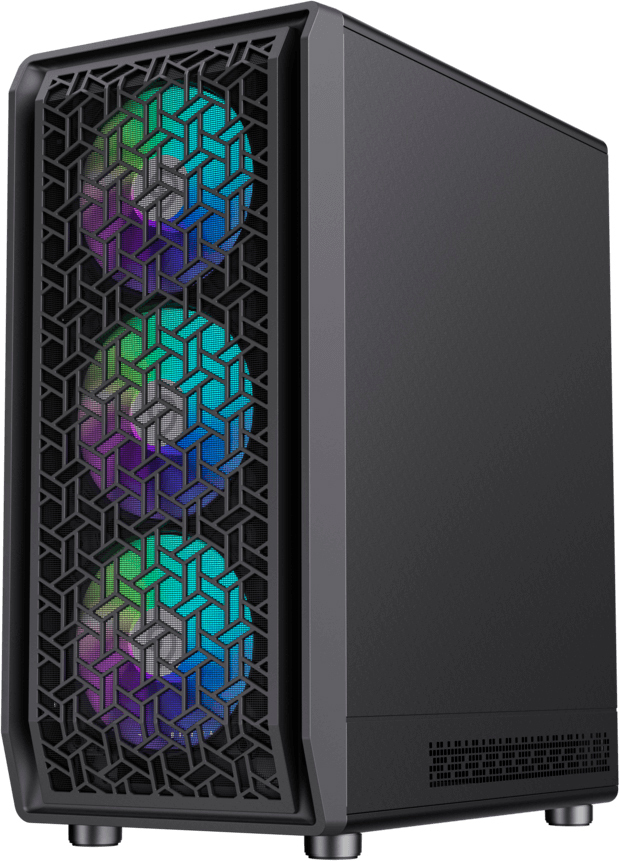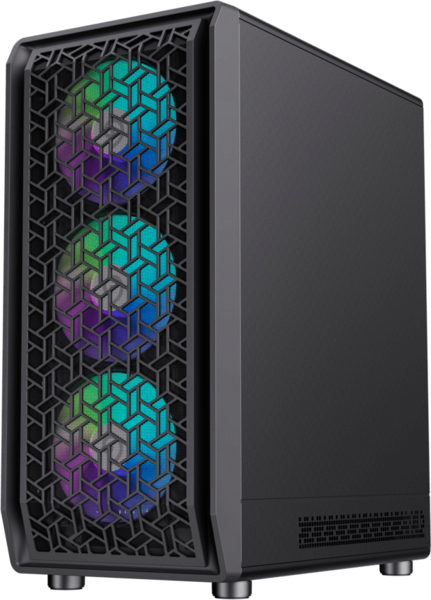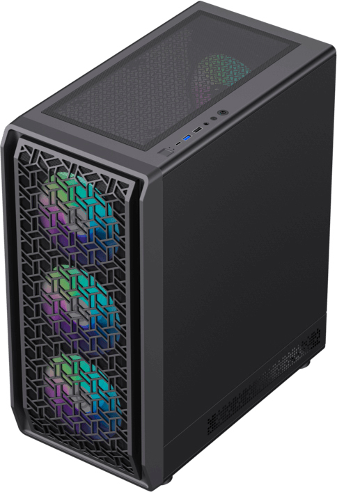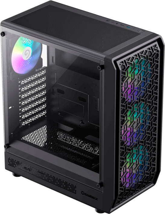 Корпус виконаний у форматі Midi Tower і поєднує сучасний дизайн із хорошими можливостями для охолодження та збірки продуктивної системи. Він має прозору бокову панель із загартованого скла, що дозволяє демонструвати внутрішні компоненти та підсвітку.