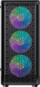 Корпус орієнтований на ефективну вентиляцію: передбачено встановлення кількох вентиляторів, а також підтримка водяного охолодження з радіаторами до 360 мм. Сітчасті панелі допомагають забезпечити хороший повітряний потік і одночасно зменшують потрапляння пилу всередину.