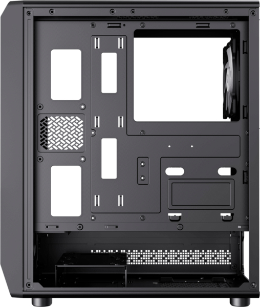 Внутрішній простір досить місткий - підтримуються різні формати материнських плат, довгі відеокарти та габаритні кулери. Це робить корпус універсальним варіантом як для ігрових, так і для робочих ПК.