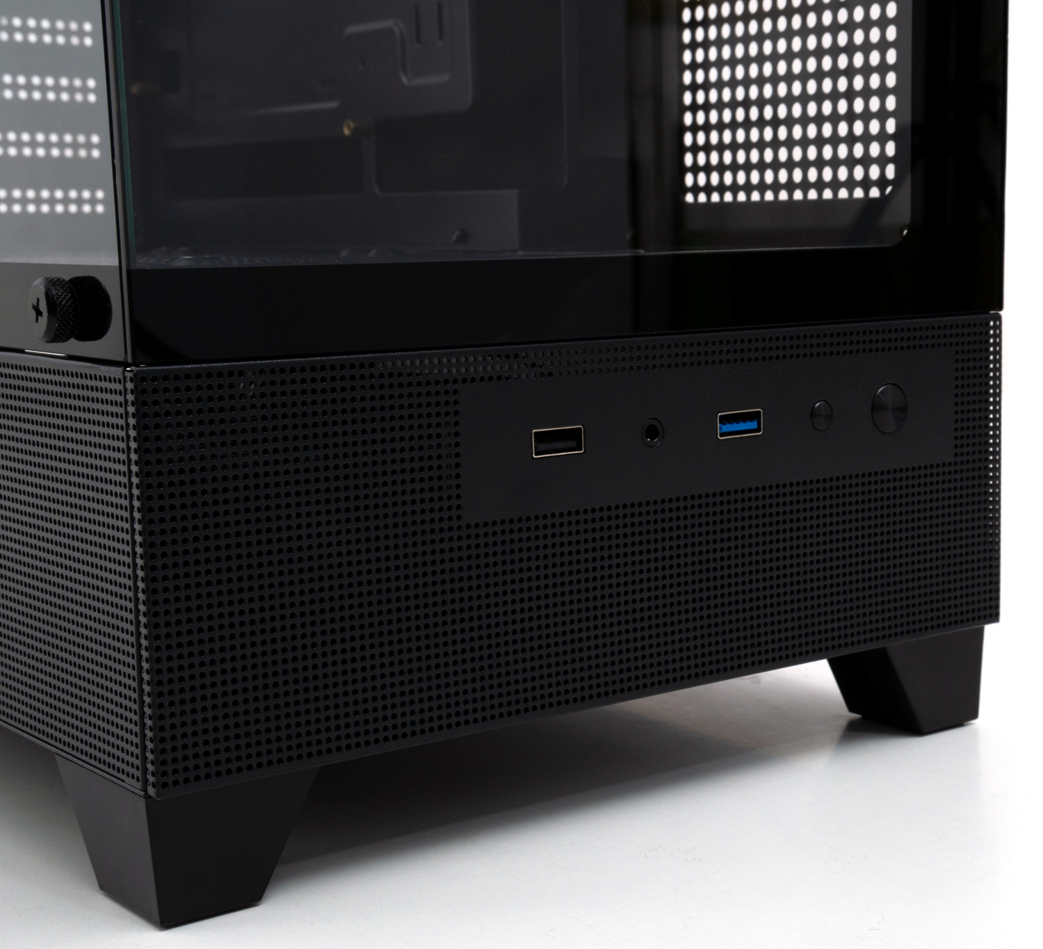 Продумані зовнішні роз'єми роблять підключення зовнішніх пристроїв максимально комфортним. На передній панелі розташовані роз'єми для аудіо, а також по одному порту USB 3.0 та USB 2.0, що забезпечують швидкий доступ до ваших зовнішніх носіїв.