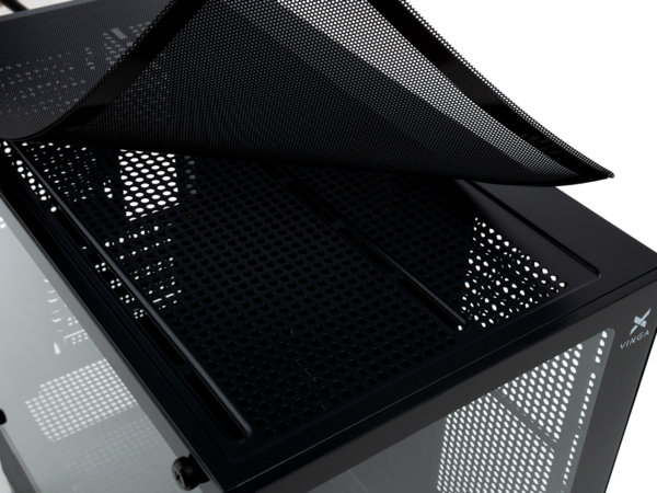 Безпека та ефективність охолодження – це головні пріоритети Vinga Albion. Корпус обладнано місцями для встановлення до дев'яти додаткових вентиляторів, серед яких 2x12 см з боку, 3x12 см знизу, 3x12 см зверху та 1x12 см ззаду. Це забезпечує оптимальну циркуляцію повітря, яка підсилюється наявністю пилового фільтра для захисту компонентів від пилу та бруду. Крім того, конструкція підтримує рідинне охолодження, що важливо для систем, які піддаються великим навантаженням.