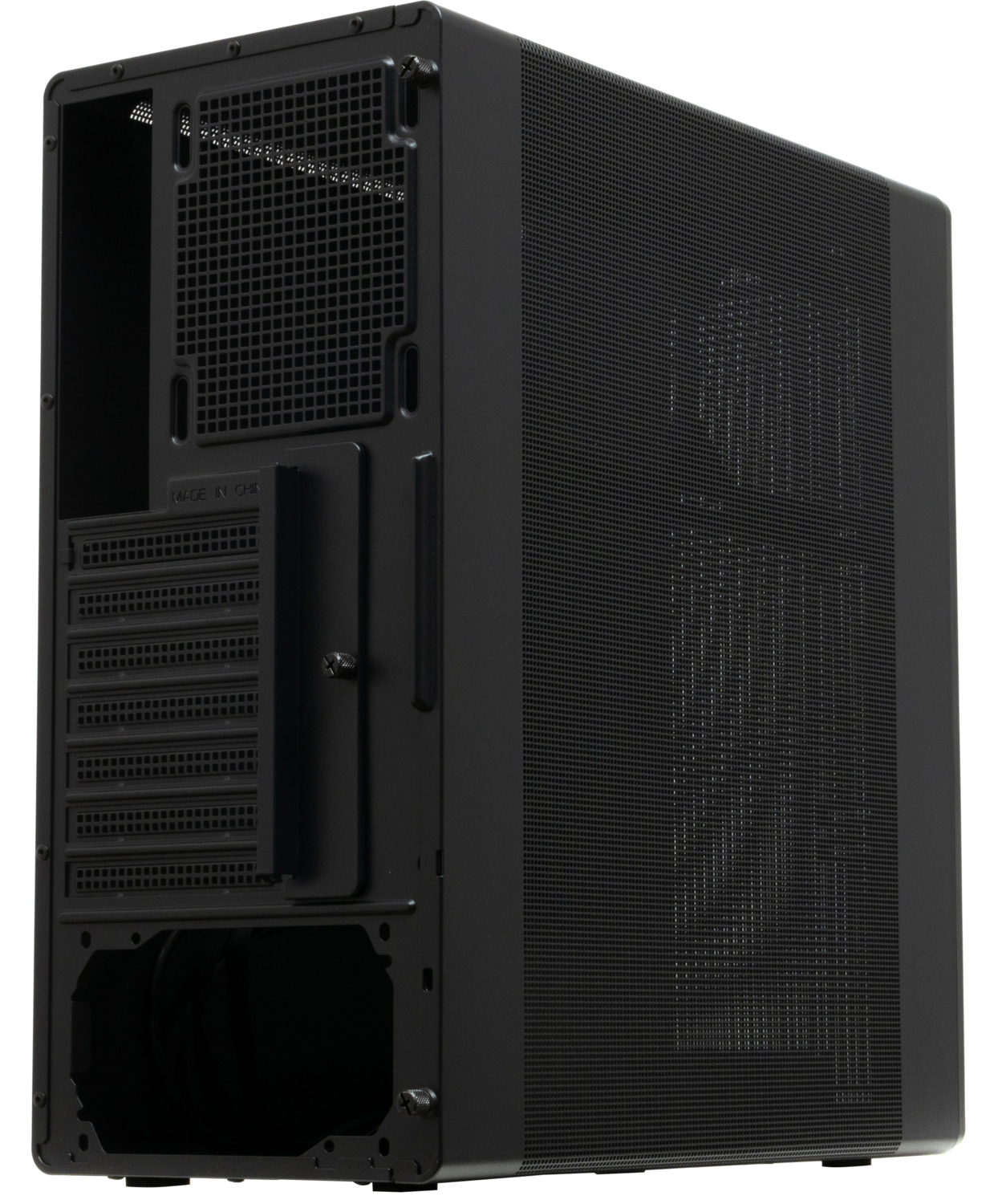 Внутрішній простір корпусу передбачає один відсік для накопичувача формату 3.5 дюйма і один для 2.5 дюйма, що забезпечує достатньо місця для зберігання даних. Також у цьому корпусі є 7 слотів розширення, які дозволяють додати різноманітні комплектуючі для розширення функціональності системи.