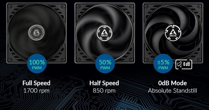 Швидкість вентилятора можна знизити до повної зупинки за допомогою PWM. Це забезпечує безшумну роботу в режимі IDLE і водночас гарантує максимальну продуктивність при необхідності.