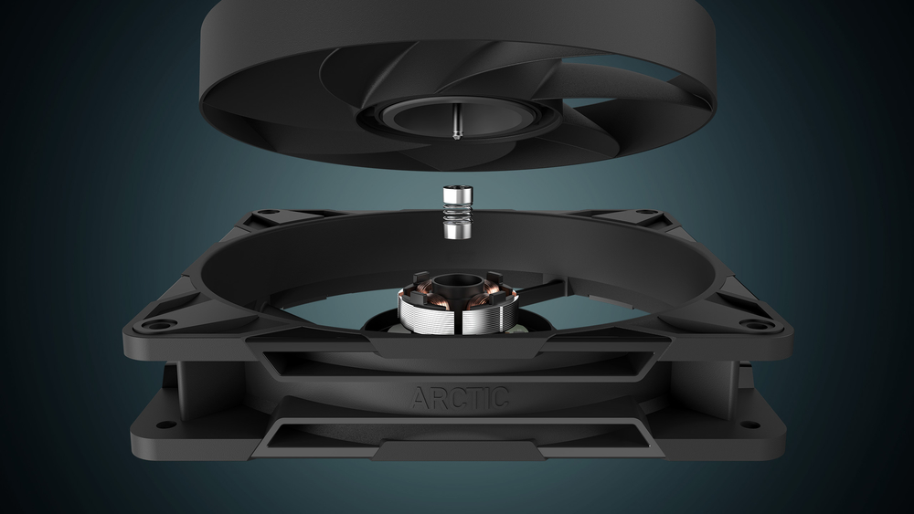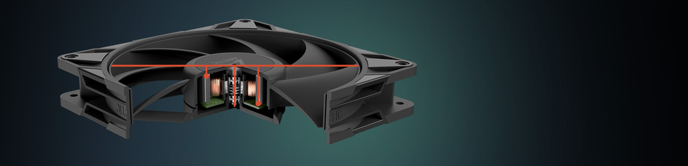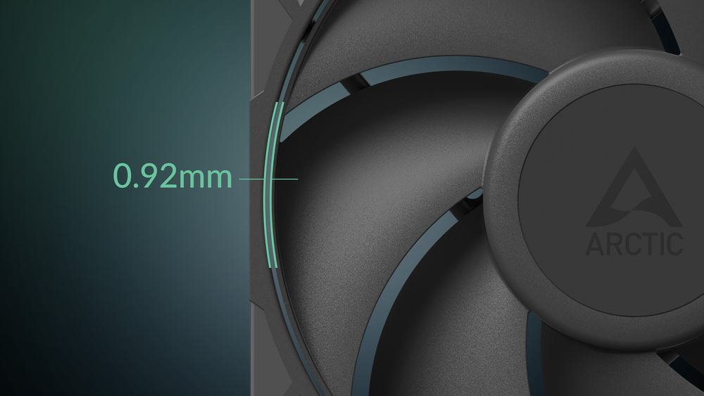 Вентилятор забезпечує вищу продуктивність на низьких швидкостях з вищим повітряним потоком і статичним тиском при рівні шуму всього 25 дБ(A) — ідеально підходить для тихого і потужного охолодження.