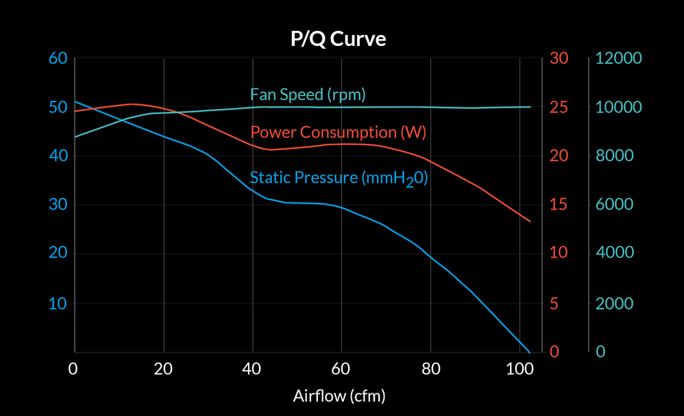 Радіатори та тепловідводи виграють від використання вентиляторів з високим статичним тиском. S8038-10K має статичний тиск 51 мм/H2O, що дозволяє йому проганяти повітря навіть через вузькі охолоджувальні ребра. Водночас він досягає максимального повітряного потоку 173,3 м³/год, що дозволяє йому швидко відводити тепло з корпусів. Ці властивості роблять його ідеальним вибором для широкого спектра застосувань.