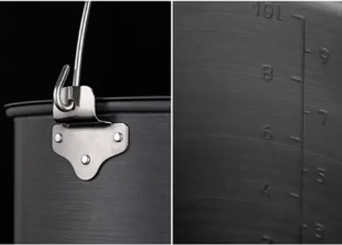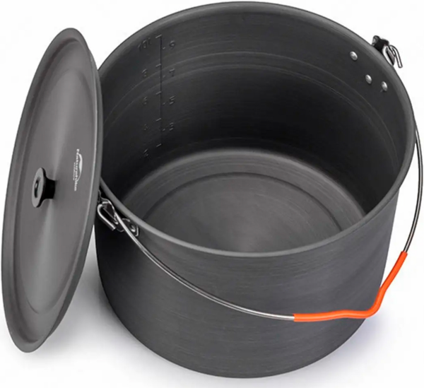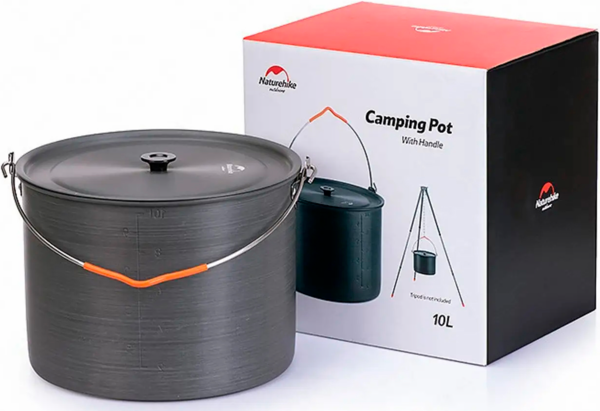 Казанок туристичний Naturehike Camping 10 л - витримує вплив високих температур, зокрема від відкритого вогню. Котел виготовлений зі спеціального високоміцного алюмінієвого сплаву. Поверхня котла стійка до подряпин, має антипригарні властивості. У котлі є поділки об'єму. У казанку В комплекті йде зручна знімна металева ручка зі спеціальною виїмкою у вигляді петлі, яка дає змогу підвішувати казан над багаттям. Казан закривається міцною кришкою з теплоізоляційною ручкою. Казан Naturehike посуду Naturehike стане чудовим подарунком для тих, хто любить відпочинок на природі та походи.