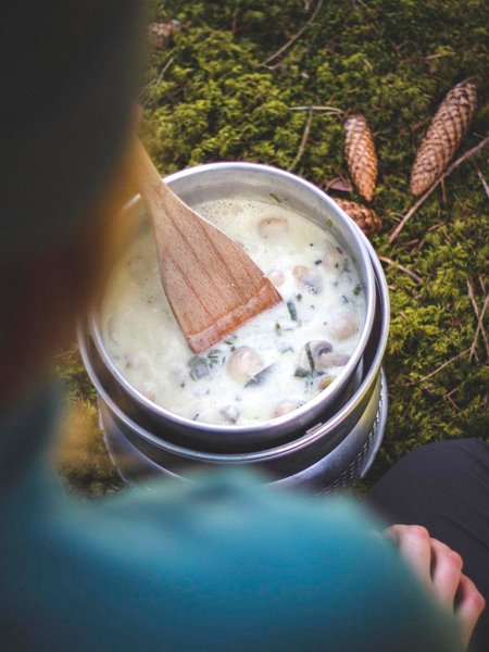 Легкий і довговічний казанок для похідної кухні від шведського бренду Trangia. Виконаний з фірмового поєднання алюмінію і сталі Duossal 2.0. Підходить для будь-яких туристичних пальників, а також багаття і печі. Може виступати запасним компонентом для туристичних плит Trangia серії 25 Large або додатковою місткістю в наборах Tundra і Camping Set. Найміцніший і зносостійкий варіант посуду в лінійці бренду. Duossal 2.0 - матеріал, де поєднуються найкращі якості алюмінію і сталі. Зовнішні стінки посуду зроблені з алюмінію, який має низьку вагу (це важливо для туристичних походів, де спорядження несуть на плечах) і чудову теплопровідність (їжа швидко готується, економлячи ваш час і паливо). На внутрішньому боці знаходиться шар нержавіючої сталі - дуже міцного металу, поверхню якого майже неможливо подряпати. Навіть після тривалої експлуатації сталеві стінки залишаються гладкими і їх легко мити: так само як улюблену домашню каструлю. Сталь добре утримує тепло і рівномірно прогріває їжу, не накопичує запахи і не змінює смак продуктів. Два метали надійно з'єднані під високим тиском. Шар сталі дуже тонкий - всього 0.3 мм, товщина алюмінію - 0.5 мм, тому Duossal 2.0 виходить легким, як алюміній, і має довговічність сталі.