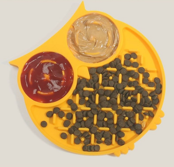 - Килимок-годівниця для собак WahoPet licky mat сова силіконовий жовтий