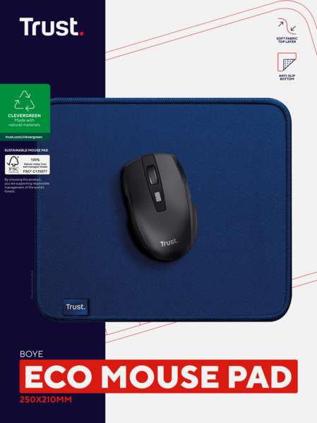 Виготовлений з натурального каучуку та переробленої тканини для покращення екологічності, килимок Boye Eco Mousepad готовий зробити позитивний вплив на ліси, громади та вашу роботу.