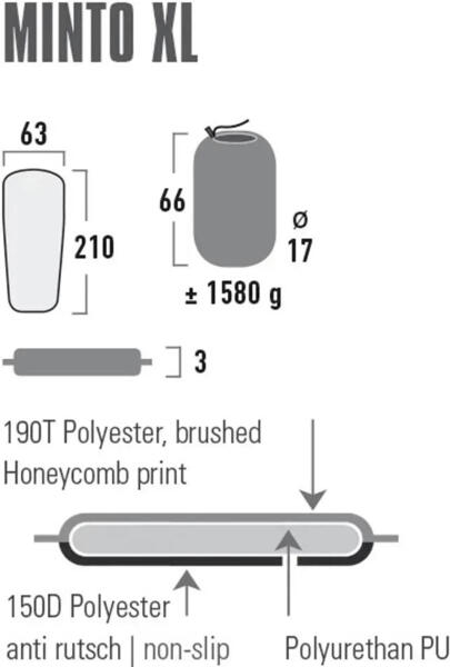 High Peak Minto XL 3 cm Black (41117) - самонадувний туристичний килимок товщиною 3 см, з наповнювачем із поліуретанової піни високої густини, що забезпечує чудову ізоляцію та комфорт під час сну. Верх із перфорацією Wave Cut ідеально прилягає до тіла та сприяє легкому складанню. Форма трапеції відрізняється простотою використання та економією ваги. Верх килимка виготовлений із високоякісної нековзної та приємної для шкіри матової тканини із поліестеру 190T зі стильним принтом у вигляді сот, а низ - із міцного нековзного поліестеру 150D. High Peak Minto XL 3 cm Black (41117) оснащений високоякісним клапаном, який миттєво всмоктує повітря, заповнюючи піну для швидкого використання. При складанні килимка повітря виходить швидше, що значно полегшує згортання. Килимок поставляється з двома компресійними ременями та чохлом для зберігання.