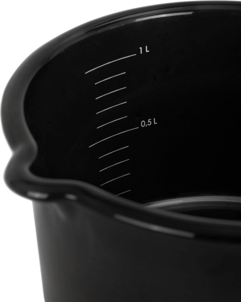 - Мірна шкала на внутрішній стінці спрощує дозування інгредієнтів. Ківш також слугує мірною посудиною для страв у великих жаровнях.