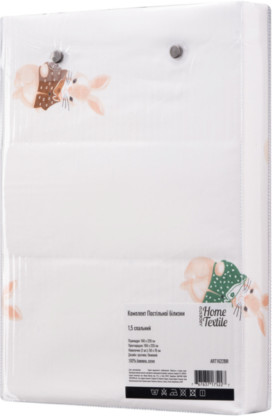 - Набір постільної білизни 1,5сп ARDESTO Gloria, 160х220см, 100% бавовна, сатин, кролики, бежевий (ART1622BR)
