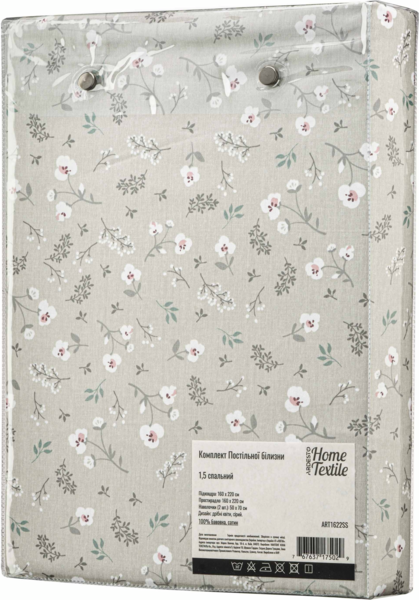- Набір постільної білизни 1,5сп ARDESTO Gloria, 160х220см, 100% бавовна, сатин, дрібні квіти, сірий (ART1622SS)