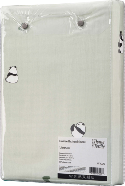 - Набір постільної білизни 1,5сп ARDESTO Gloria, 160х220см, 100% бавовна, сатин, панди, зелений (ART1622PS)