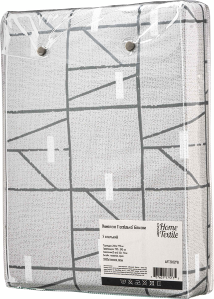 - Набір постільної білизни 2,0сп ARDESTO Gloria, 200х220см, 100% бавовна, сатин, геометрія, сірий (ART2022PG)